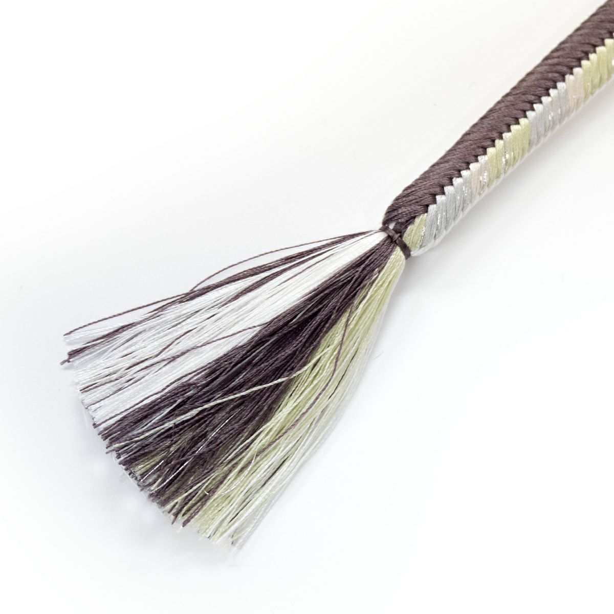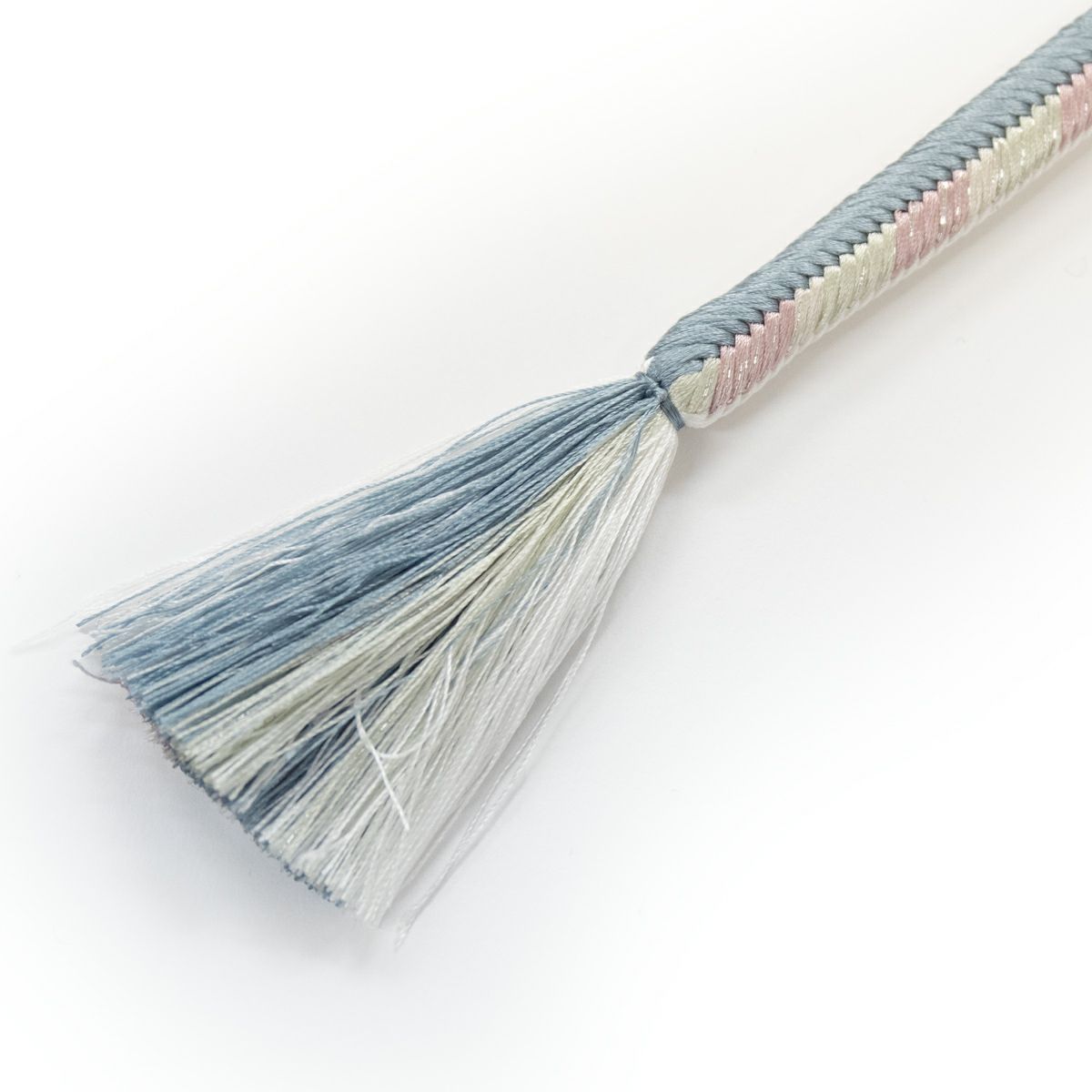 銀糸はごく控えめに使い、絹の艶で光沢感を表現した上品な帯締めです。