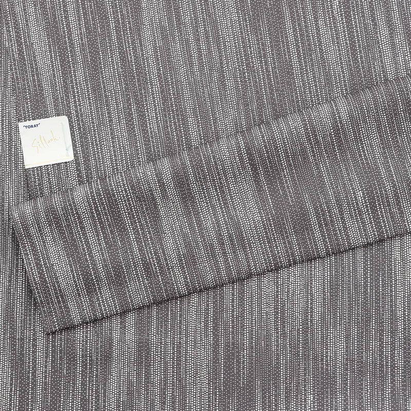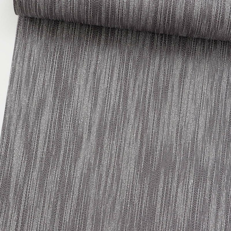 グレー地に細かいドットで縞柄が表現されたカジュアルな小紋。