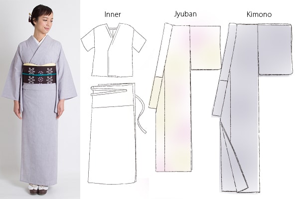 (▲下着、襦袢、着物。こんな構造になっています)