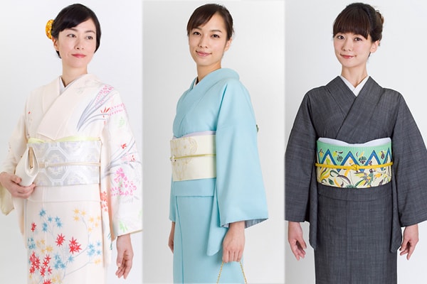 (▲左よりフォーマル、 セミフォーマル、 カジュアル着物の例)