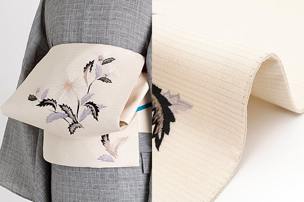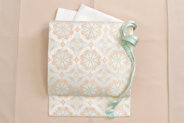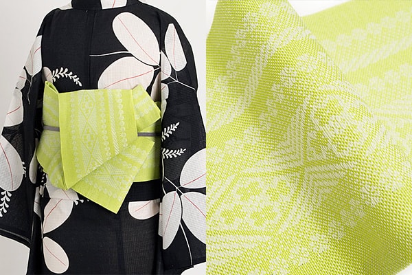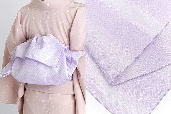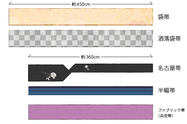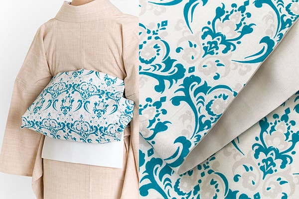 フォーマルな場所には袋帯、カジュアルな場所では洒落袋帯、名古屋帯、半幅帯、ファブリック帯を着用します。