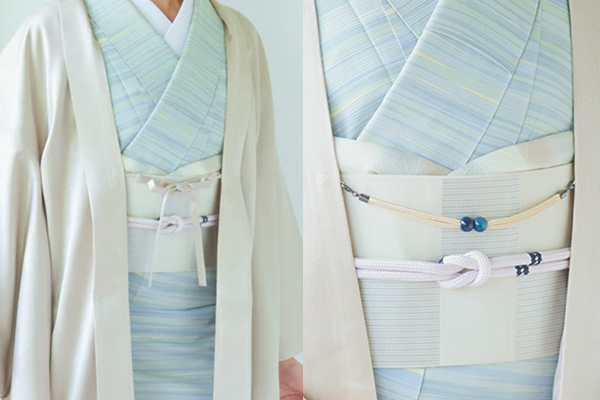 羽織は前が開いているので、帯まわりが見えます。着物、帯揚げ、帯締め、羽織紐のコーディネートが面白いところ。羽織に合わせて、いくつでも揃えたくなってしまいます。