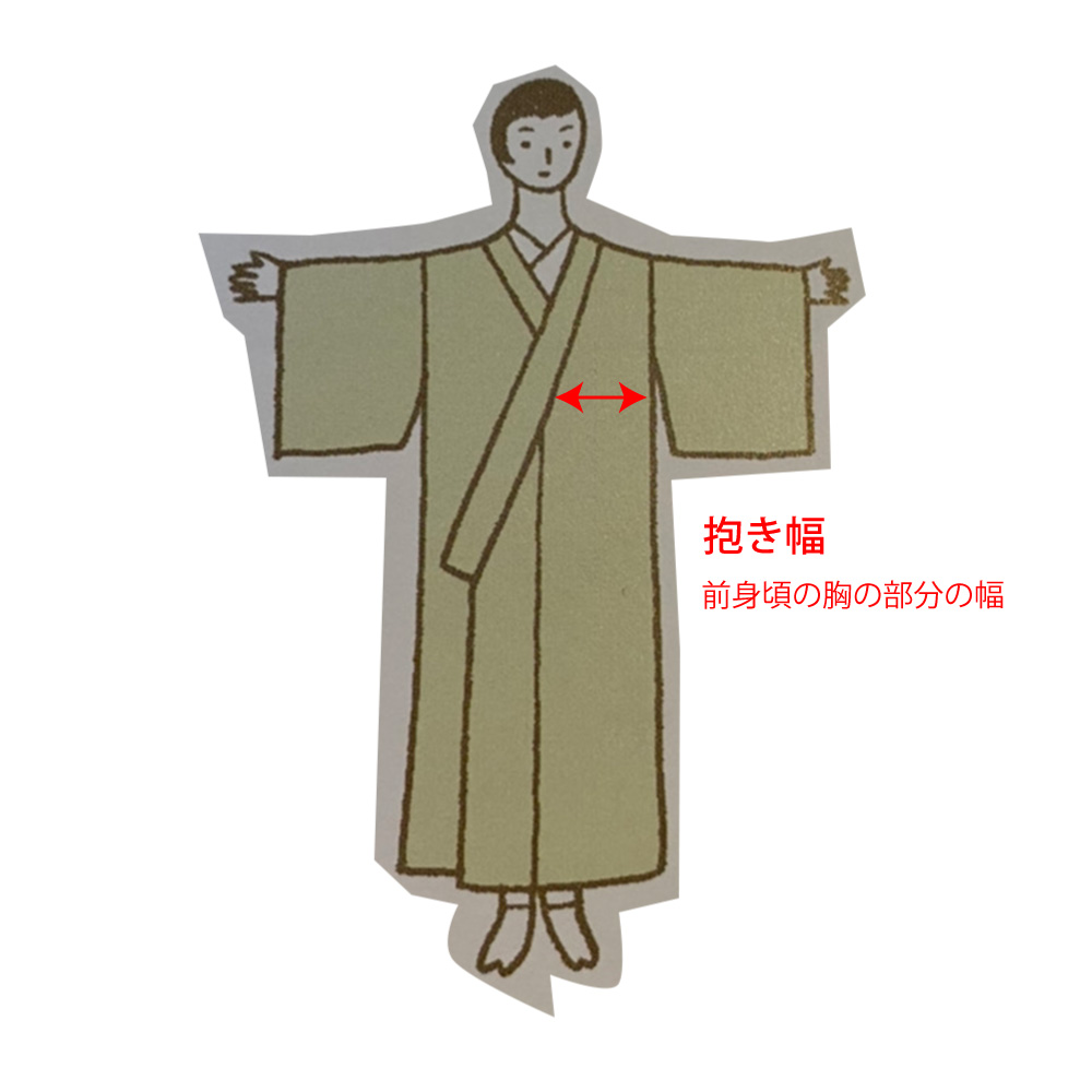 私は前身頃の胸の部分の幅「抱き幅」という部分を狭く仕立てて貰った着物を持っています。