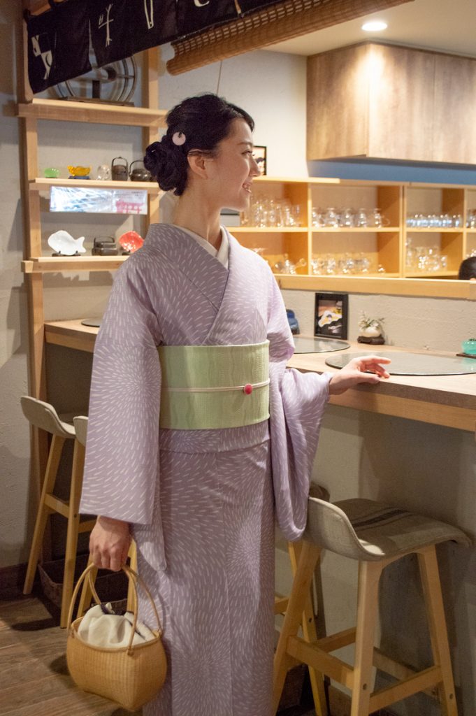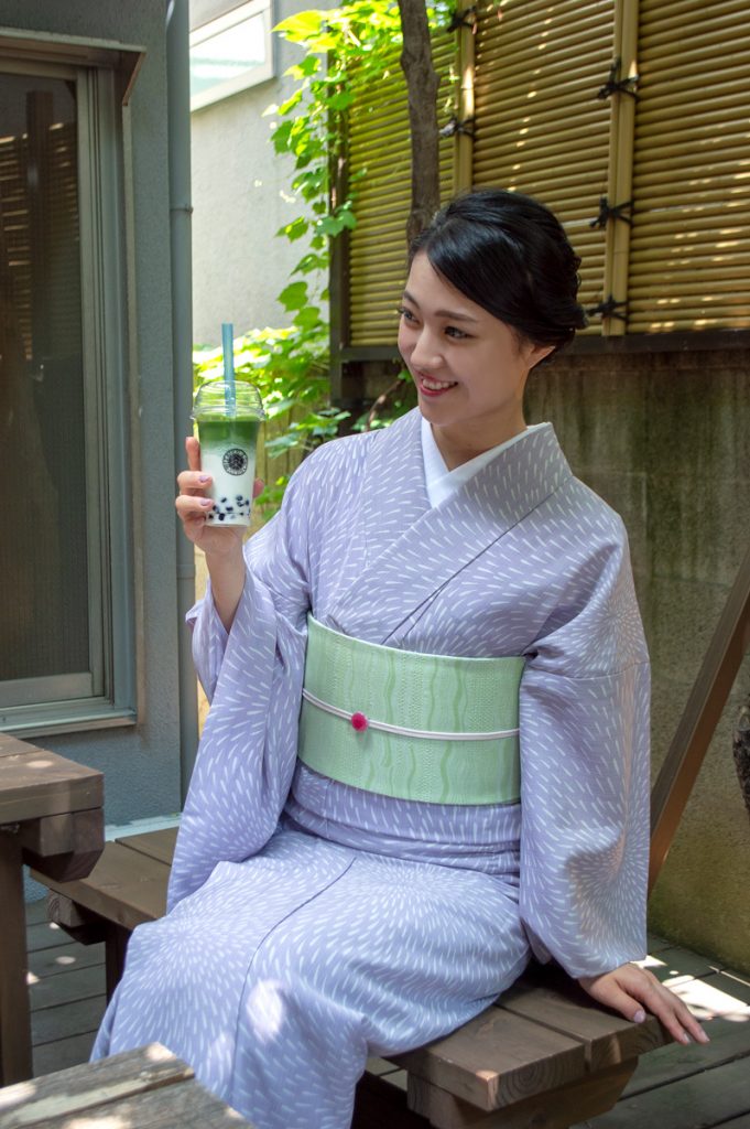 気軽に訪れることが出来る場所なので、半幅帯だと座った時の後ろ姿も華やぎます。