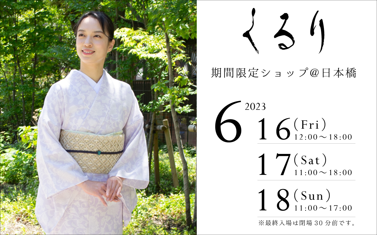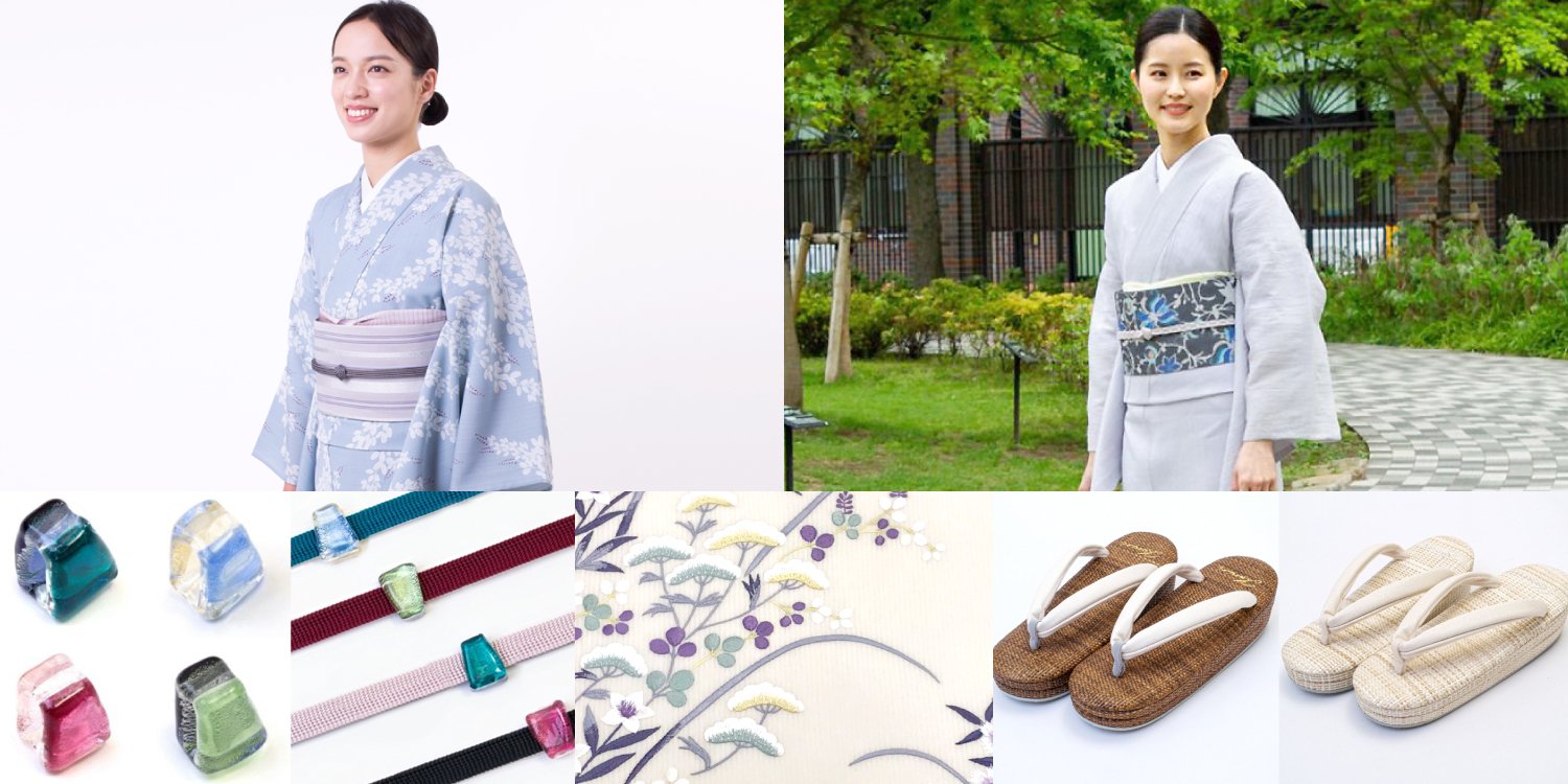 夏の定番きもの「麻楊柳」、さらりとした着心地が人気の「セオαきもの」、Tシャツ襦袢「ルグラン」など、くるりオリジナル商品が勢ぞろい!