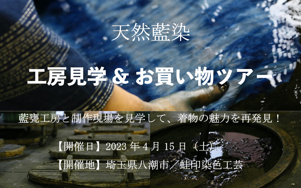 江戸期より伝わる「灰汁発酵建て」という技法で藍染を行う『蛙印染色工芸株式会社』様にご協力いただき、【工房見学&お買い物ツアー】を開催いたします。