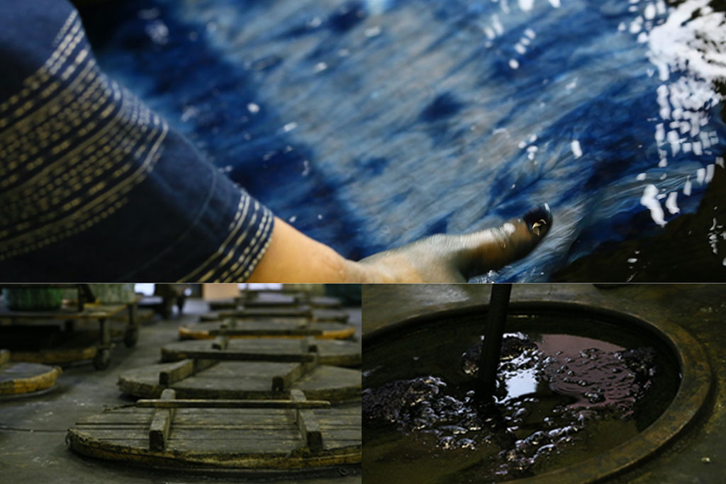 灰汁発酵建ての藍染は化学薬品を一切使わずに、自然からとれる原料を用いるため、環境にも優しい染色方法です。