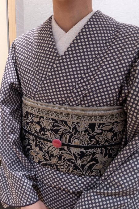読み物 桐生織半幅帯【Iris】イチオシです♡ 2019年11月11日 こんにちは。着物屋くるり大阪店です。くるりの新作の半幅帯【Iris(イリス)】、桐生織りのふっくらとした織り柄に奥行きがあり、今スタッフのイチオシ品です(^^♪ 今日は大阪店スタッフ着用写真とともにご紹介いたします。 これまでの半幅帯には、どうしても「カジュアルダウン」してしまうイメージがありましたが、桐生織半幅帯【Iris(イリス)】には、名古屋帯にも負けない華やかさと品があり、普段着の着物をドレスアップしてくれます! 帯幅は約17cmと広めなので、前姿を見て「名古屋帯?」と尋ねて下さるお客様が多いです。 また長さも約395cmとアレンジも様々!楽しんでいただけます! 「長尺」を活かした、立体的な飾り結びがお楽しみいただけます。雰囲気の異なる二つの織柄が重ね合わさることで、帯の表情が豊かに! 片面はシンプルなチェックなので、柄物の着物にもgood。帯締めや帯揚げ、帯留などを合わせて、帯周りをグレードアップすると、さらにお洒落な着こなしが楽しめますよ。 桐生織半幅帯【Iris】¥18,000(税抜き) ********************* くるり大阪店 〒530-8202 大阪府大阪市北区梅田3-1-1 大丸梅田店11階 06-6341-6280 10:00-20:00 年中無休(年末年始は除く) osaka@kururi.net 前 新作、続々入荷! 最近 いろいろ素材の帯留展