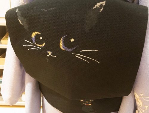 こんにちは、着物屋くるり大阪店です。 本日のくるりちゃんは、黒猫の帯を活かしたち…