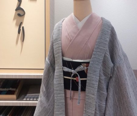 こんにちは。着物屋くるり大阪店です。 本日のくるりちゃんは灰櫻色を活かしたおでか…