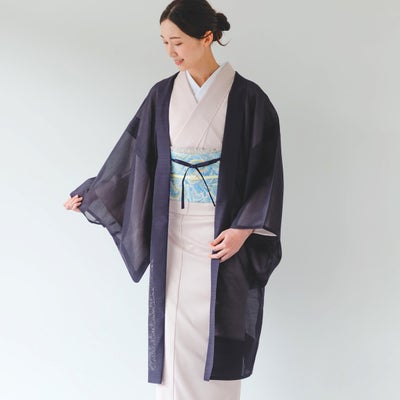 黒より重くなりすぎないお色と軽やかな透け感がとっても品がよく軽やかな印象で使いやすそうな羽織です。秋になったら羽織るの楽しみです。