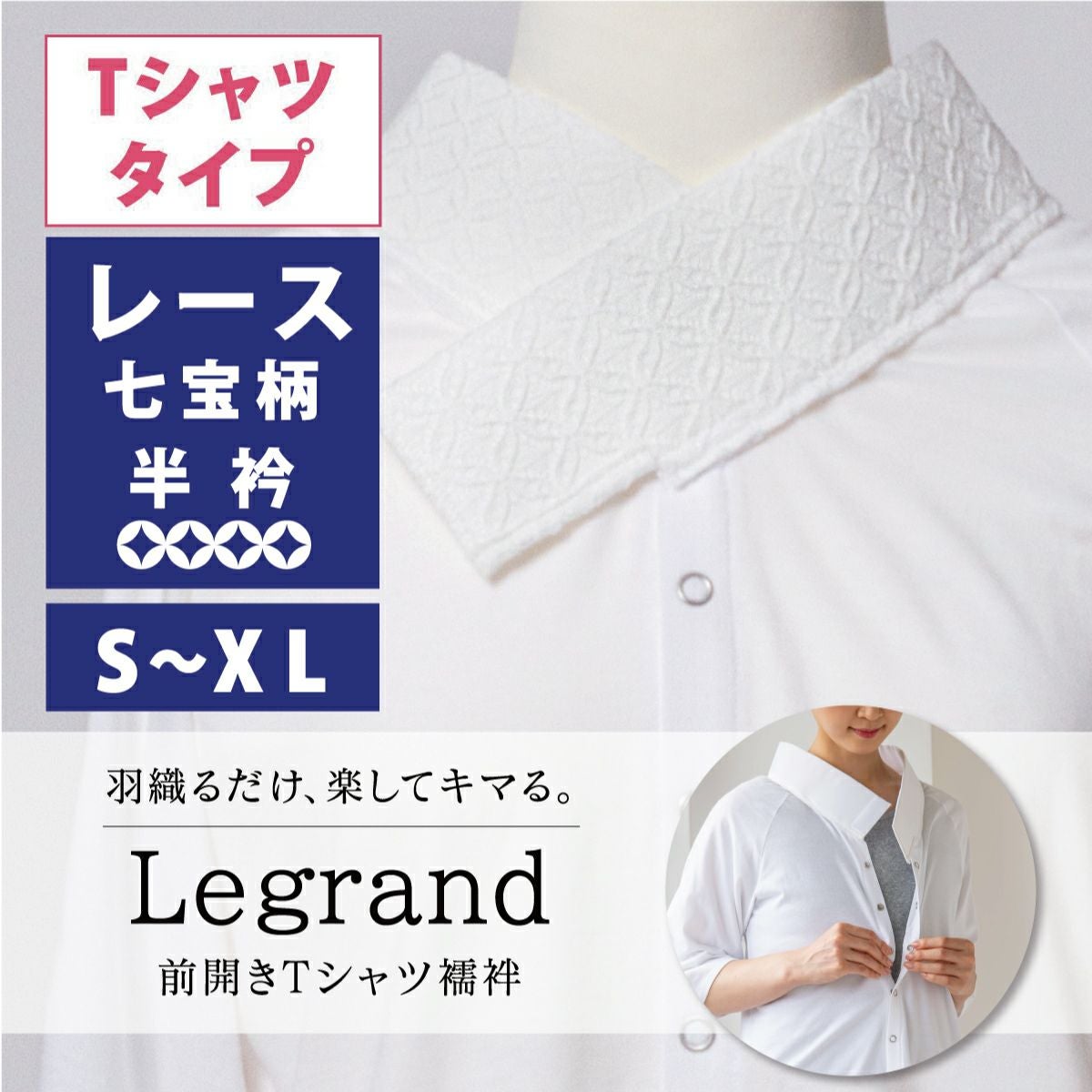 他の画像を見る ★10%OFF★【CHIKUMO-千雲-】前開きTシャツ襦袢 Legrand(ルグラン)Tシャツタイプ レース 半衿 七宝 S~XL くるり SALE 通年OK 送料無料 定価 ¥ 11,550 のところ 価格: ¥ 10,395 税込 カートに入れる お気に入りに登録する