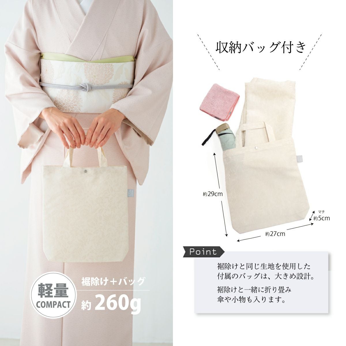 他の画像を見る 【CHIKUMO-千雲-】はっ水ラップボトム更紗 オフホワイト スナップ式 晴雨兼用 洗える裾除け 雨コート くるり 新着アイテム 送料無料 価格: ¥ 24,750 税込 カートに入れる お気に入りに登録する