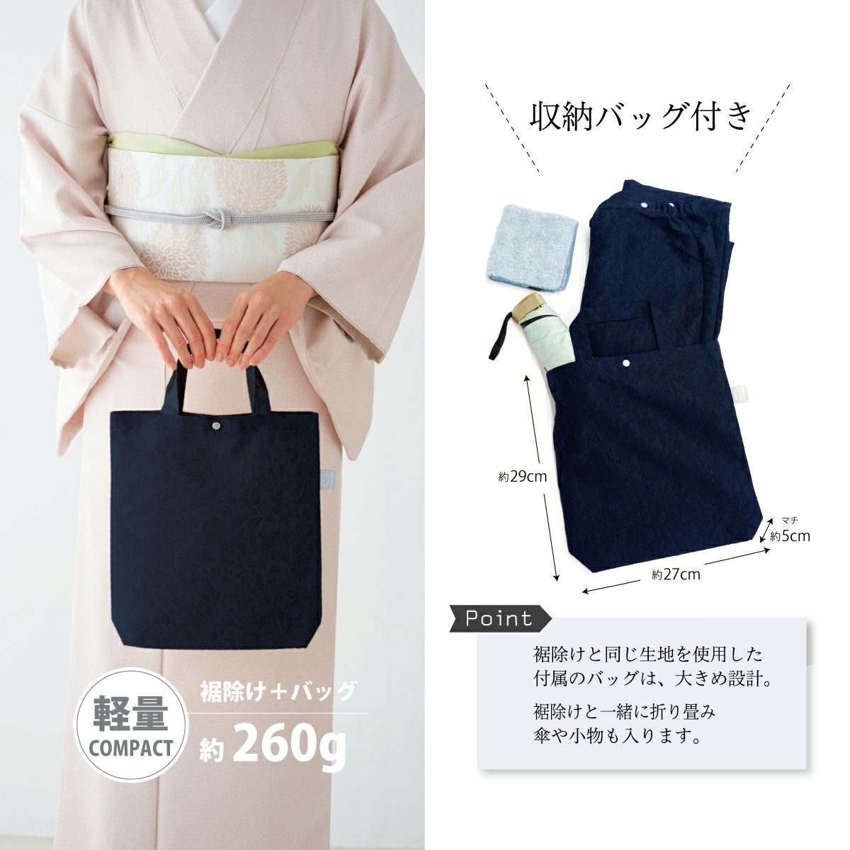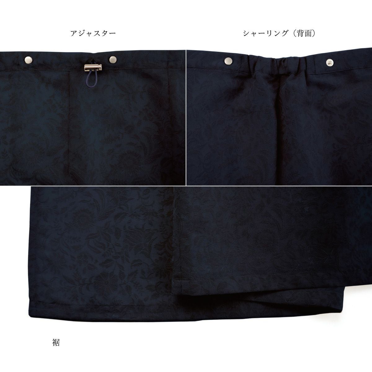 他の画像を見る 【CHIKUMO-千雲-】はっ水ラップボトム更紗 ネイビー スナップ式 晴雨兼用 洗える裾除け 雨コート くるり 新着アイテム 送料無料 価格: ¥ 24,750 税込 カートに入れる お気に入りに登録する