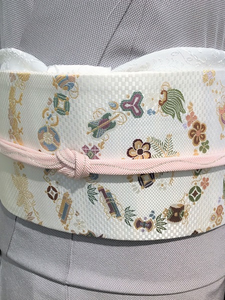 柔らかな色彩で表れた宝尽くし文様は、まさにお祝いにぴったり。