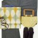 お太鼓部分はお抹茶色ですが、たれ先や胴の部分は濃い鈍色の配色に。柔らかい円は巻き上げ絞りで染められ、真ん中の黄色い色は手挿しで染められたもの。着物の縞格子と対照的になっており、遊び心がある通好みなコーディネート。