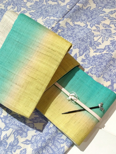 寒色系の小物でまとめ清涼感はそのままに、帯留などの小物あわせで大人の遊び心を取り入れてみました。